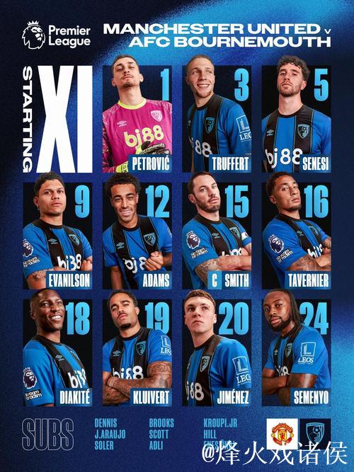 英超联赛本轮一场颇具看点的对决即将在老特拉福德打响,曼联坐镇主场迎战来势汹汹的伯恩茅斯。赛前双方首发名单已基本浮出水面:曼联方面,由B费(布鲁诺·费尔南德斯)联袂卡塞米罗坐镇中场,而伯恩茅斯则有状态正